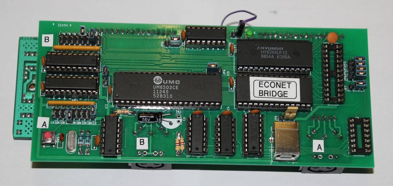 Here's a newly made Econet bridge, based around the original Acorn design, with 6502 processor, 8K RAM and bridge software in ROM.