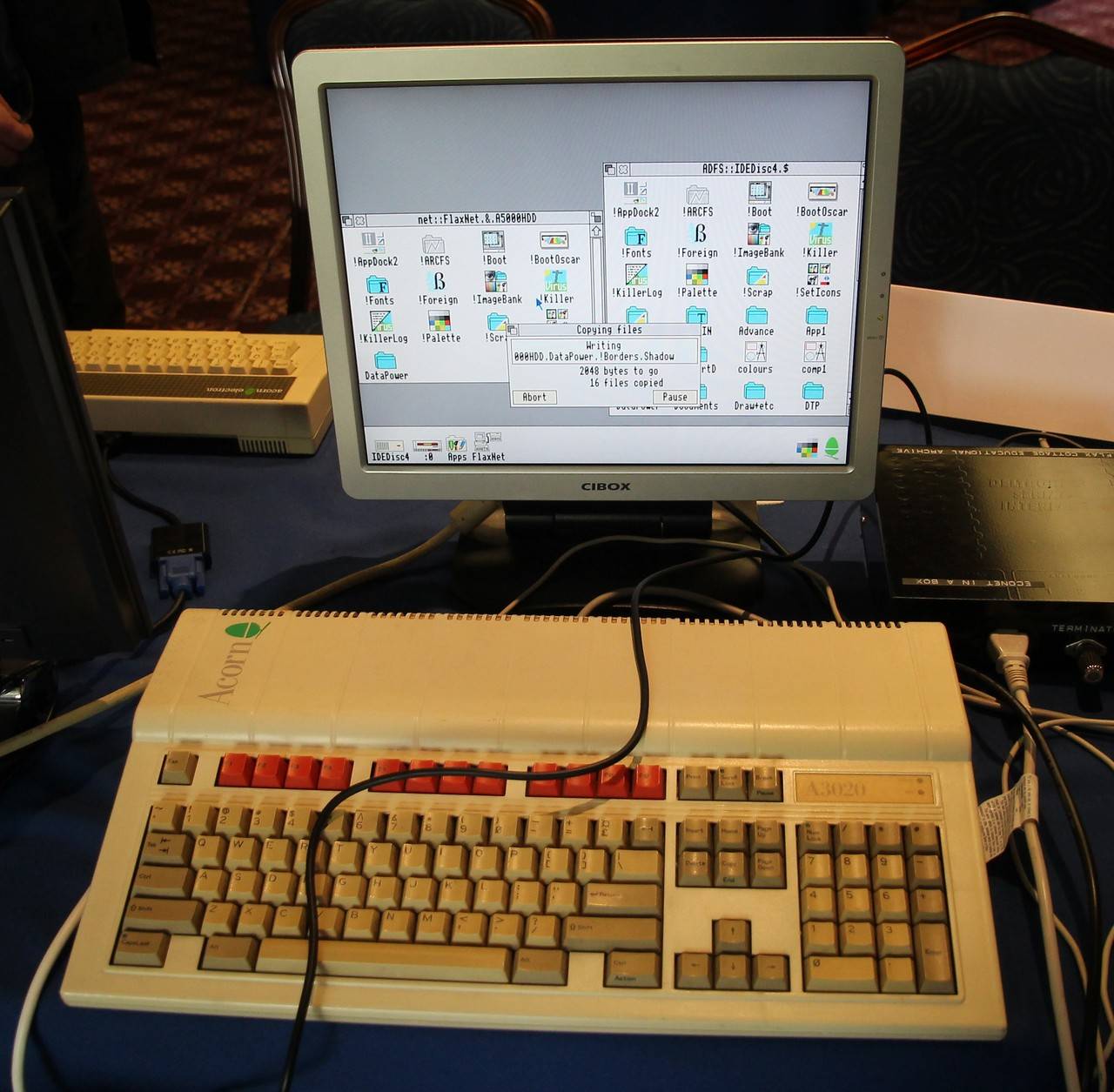 The A5000 is making a backup of its hard drive to the Econet Level 4 file server running off this A3020.
