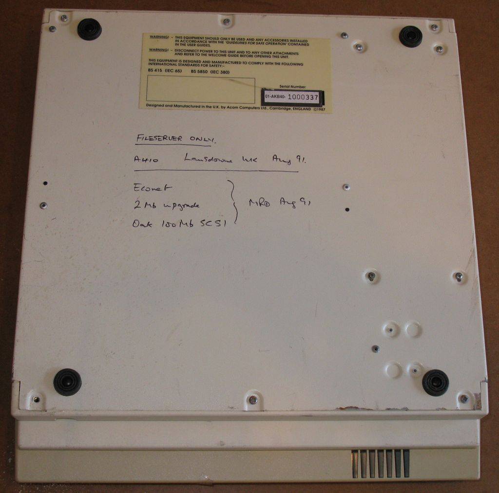 The previous owner has recorded some upgrade information on the bottom, which adds to what we know about the Econet interface - this must have been a Level 4 file server at some point in its history. It's about time I had a look inside.