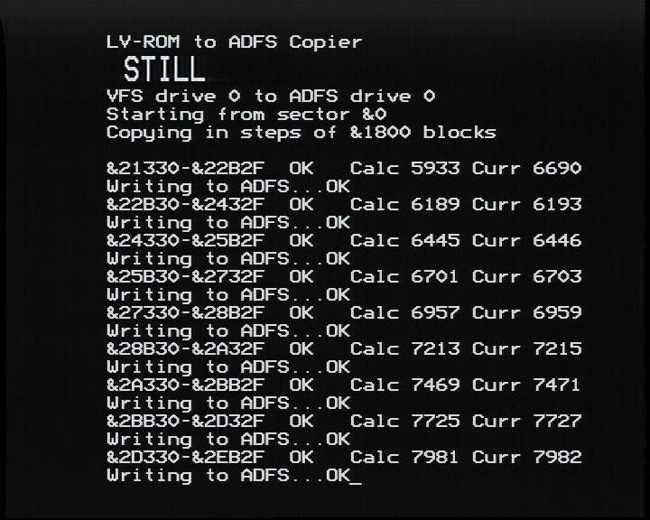 Copying in chunks of &1800 disc sectors appears to work very well.