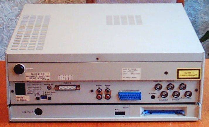 Underneath this is the additional section only found on the Domesday VP-415 model. It has an RGB in socket to the left, a set of ID DIP-switches towards the middle and a SCSI connector to the right.