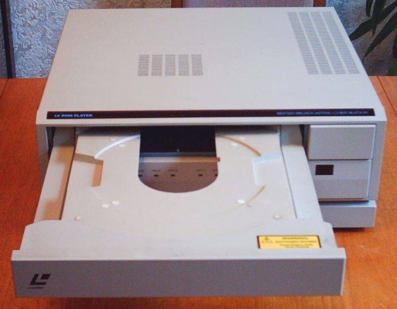 Notice the warning label on the right-hand side of the tray advising users not to trap their fingers when the door is closing. You don't get anything like that on a modern CD player! I suppose the tray on a CD player these days would collapse into bits if a finger got in the way. The LV-ROM is made out of girders and would most likely detach any stray digits.