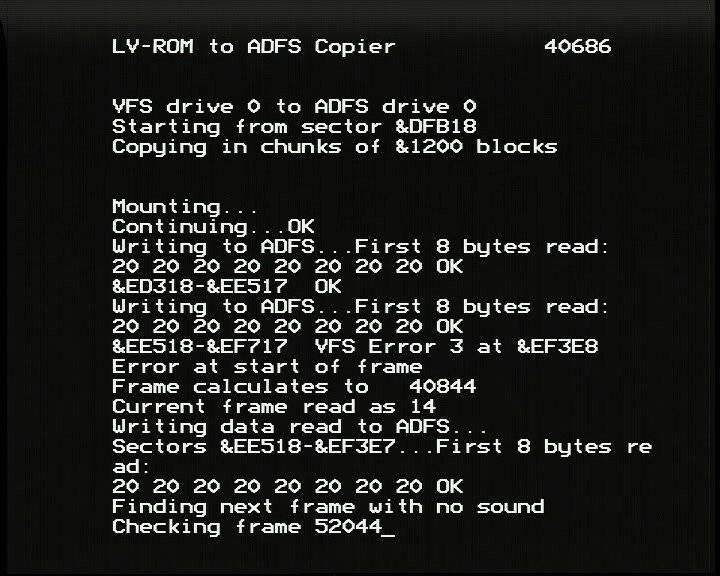 Here we get to a point in the disc with sound, which means there is no LV-ROM data, as the sound and data use the same part of the frame information.