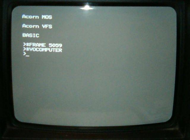 *VOCOMPUTER switches the display to the BBC output only. As you will see, I have asked the LV-ROM to display frame 5059 and then issued *VOCOMPUTER so we can only see the BBC screen.
