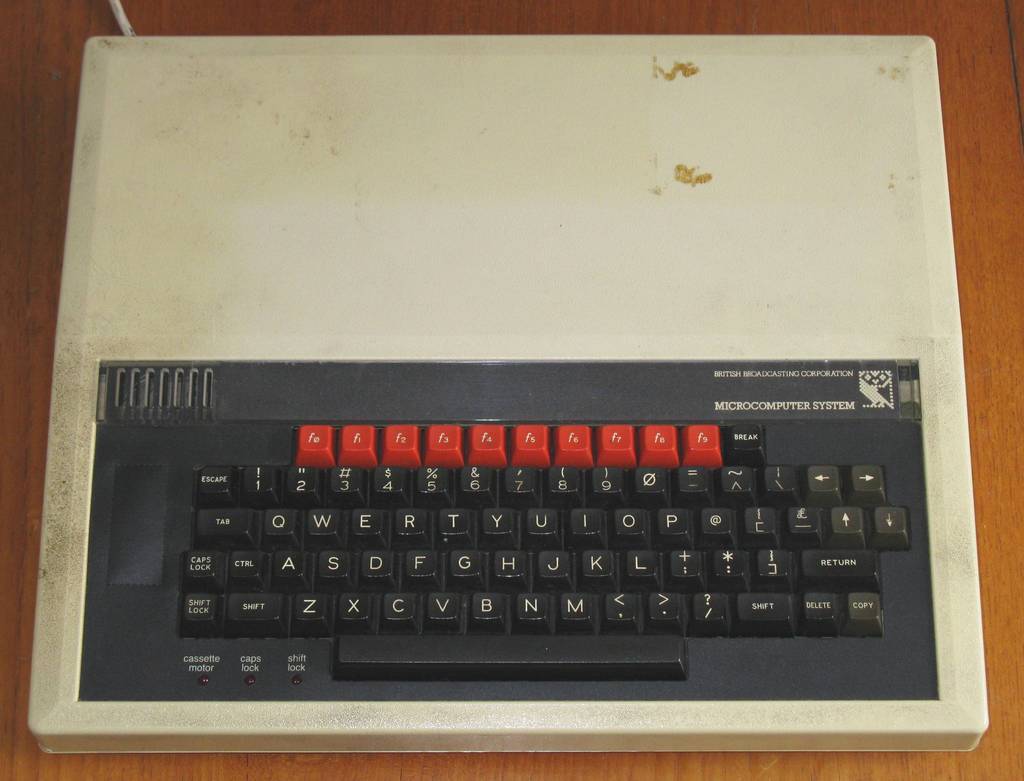 A bit grubby, later legend on function key strip, smoother case texture, perforated serial ROM chamber cover. Could be any old Beeb really!
