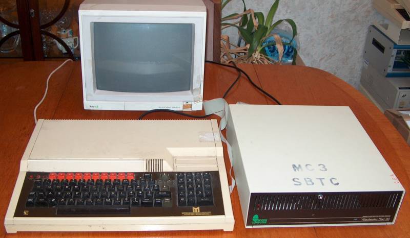 This is a BBC Master 128 setup with the Acorn Winchester Disc attached. This is how a computer hard disc system would have looked 20 or 25 years ago, with the external hard disc unit taking up quite a bit of space!