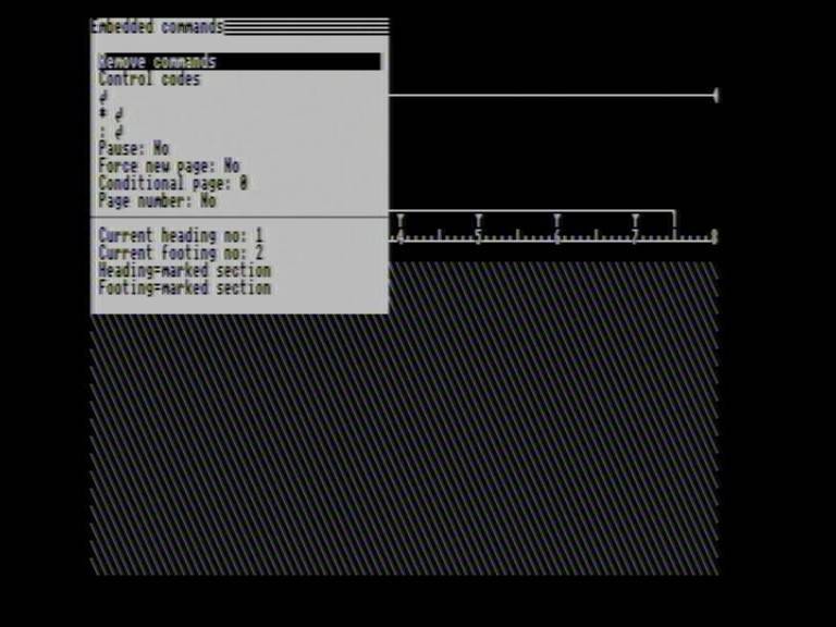 At any point in the text we can embed commands, which might be printer control codes, * commands (such as *TIME so the current time is printed out as part of a document, or even a disc catalogue using *CAT) or ":" commands, which are Inter-Word internal commands.