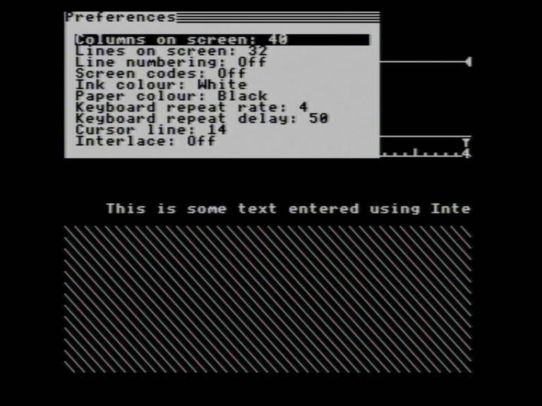 The preferences menu sets display options. The first is the number of columns displayed on screen. The default setting is 80 but this can be changed to 40...