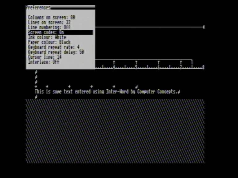 By the way, if I didn't say before, the up and down cursor keys move between the different options on these menus whilst the left and right cursor keys change the setting of the selected option. Many of the options change instantly and pressing RETURN or ESCAPE will clear away the menu with the current set of options put into force.