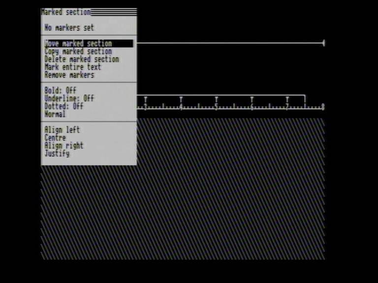 Ctrl-F2 brings up the Marked section menu. F3 is used to set the markers between two points in the text and the marked section can then be manipulated or formatted using his menu. It's very handy to press Ctrl-F2 when you can't remember the function key short-cut to delete a block or set it to bold. Instead just use the cursor keys to select the right option and press RETURN!