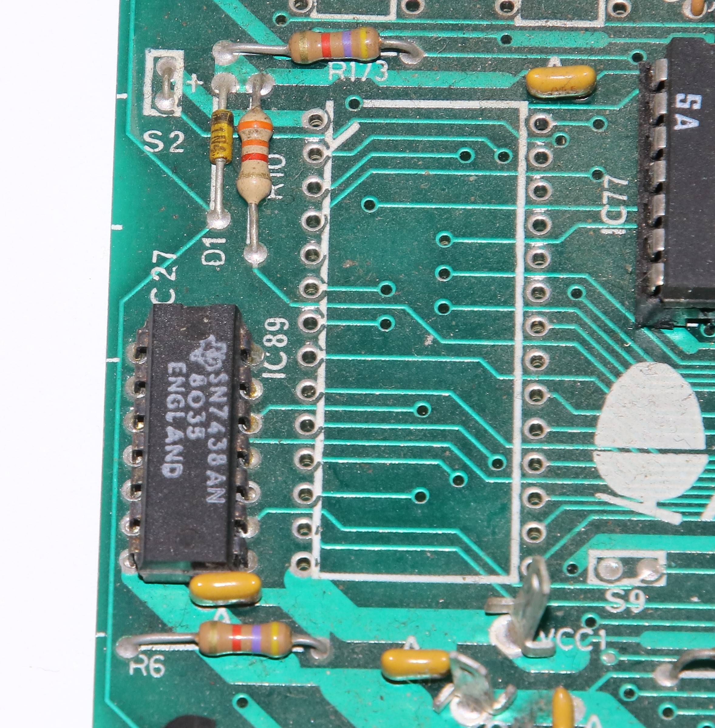 It's IC27, next to the Econet ADLC, and it's an old chip with date code 8035, predating the invention of the Beeb by at least a year!