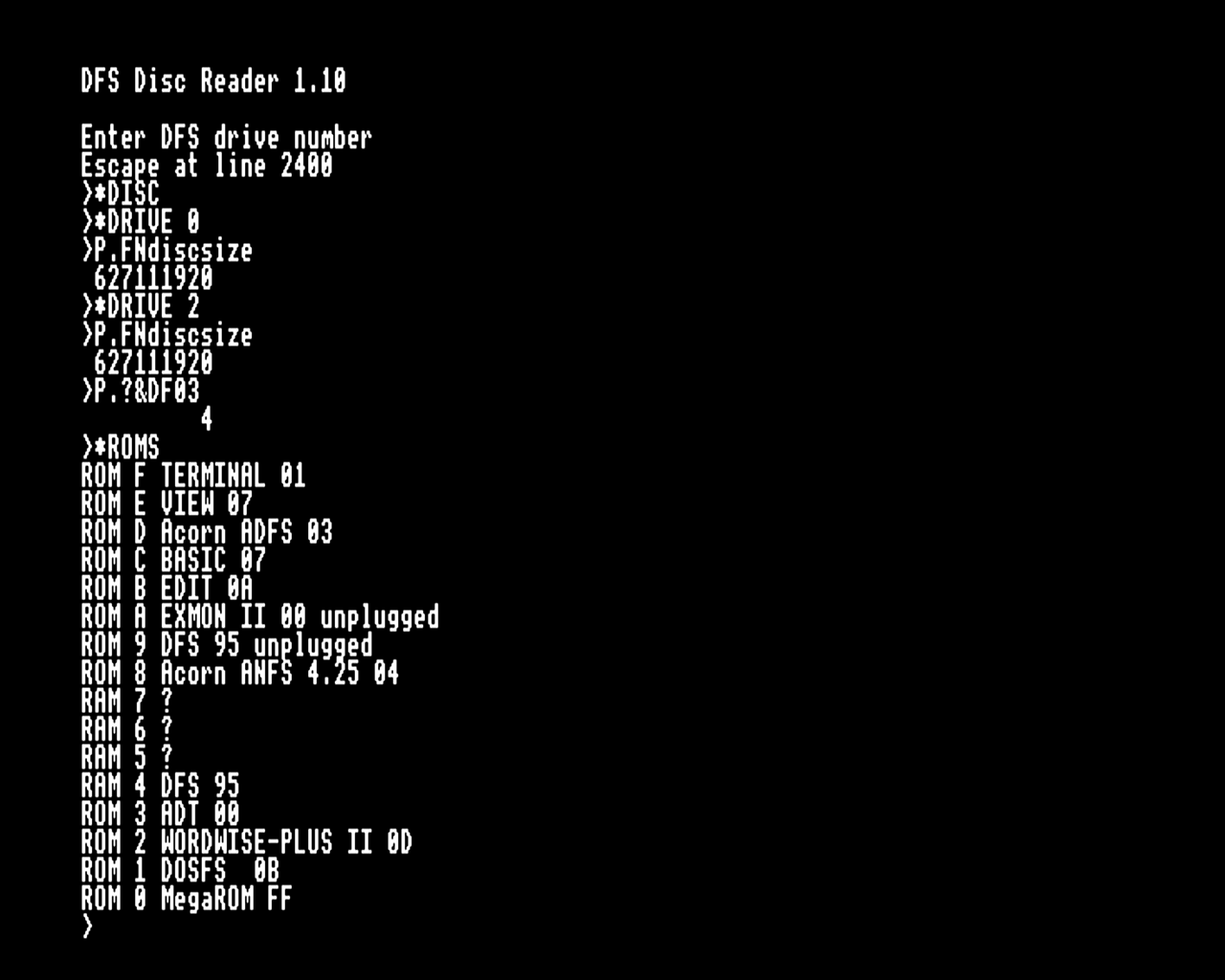 DFS in sideways RAM is still selected.