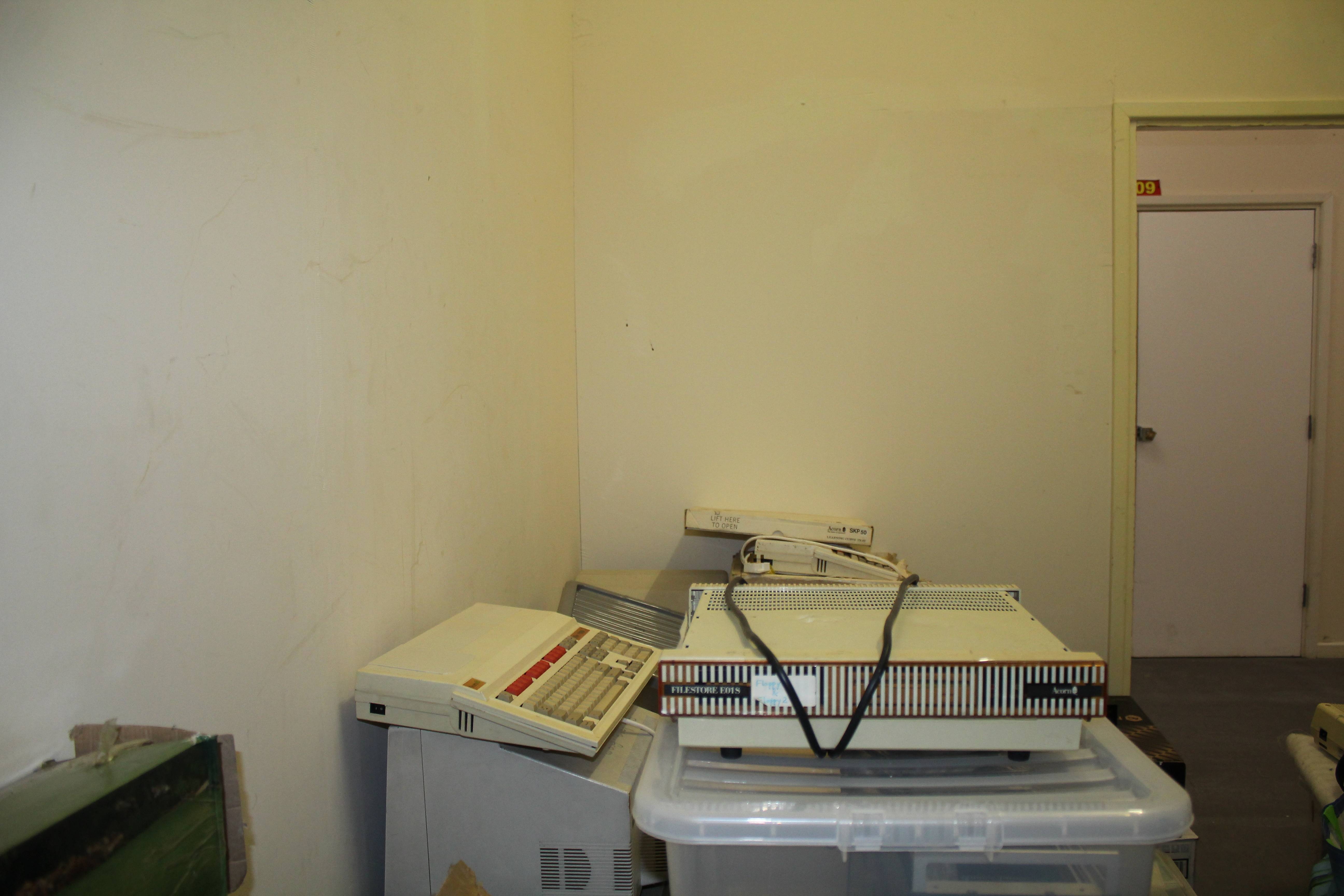 This is the view from inside looking out. In the corner next to the door there used to be another shelving bay holding my nonitors.