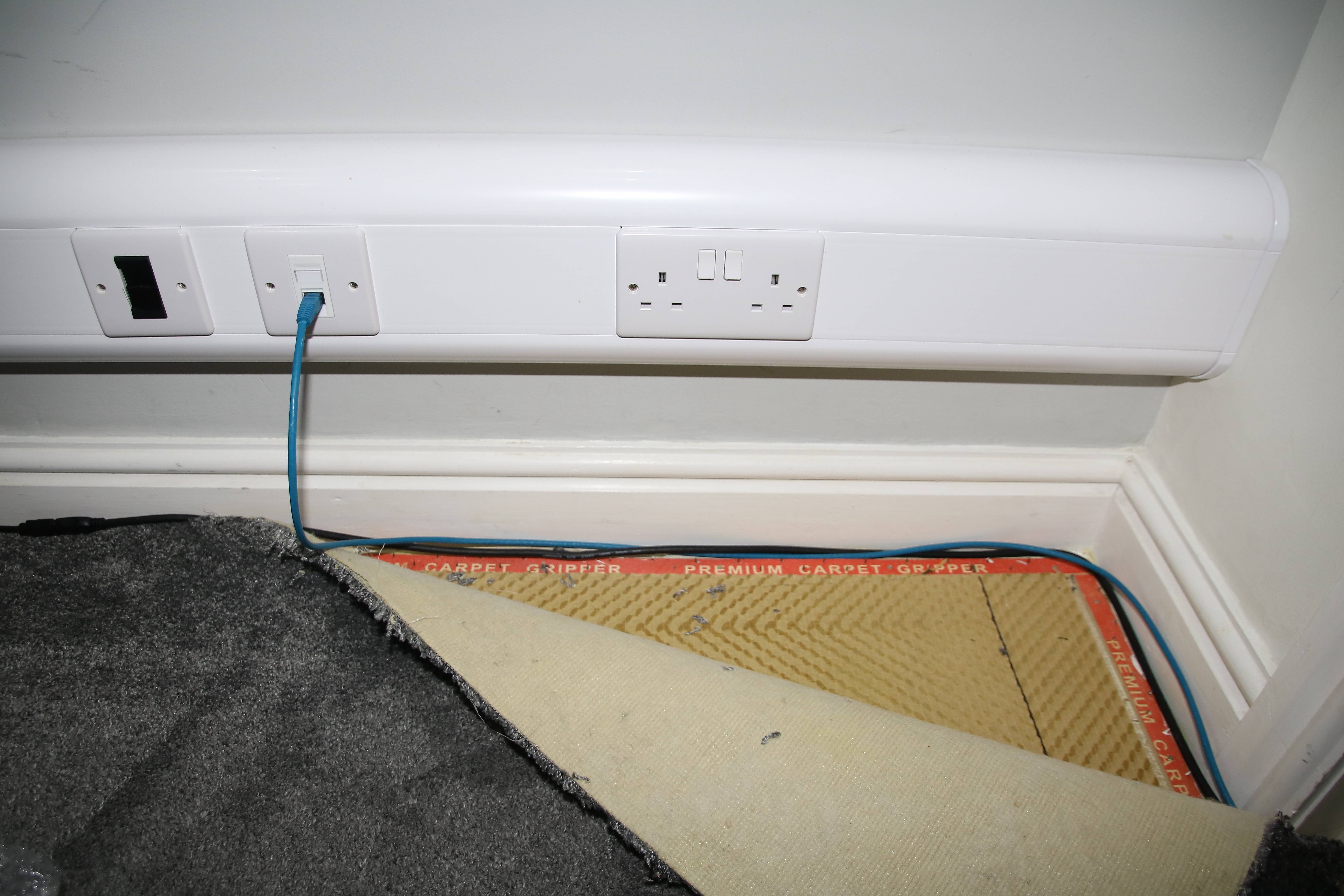 This goes under the carpet, and to the door, under the carpet plate and across the hall and under the plate into the BeebOffice and then into a network switch.