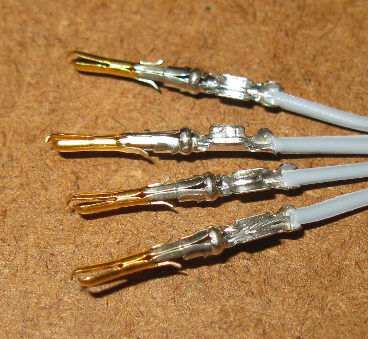 Soldered to the 4-way lengths of ribbon cable. That's it for these pictures, I didn't go any further photographically, for some reason, but in brief the next step is to solder either 5¼" or 3½" pins to the other end and then fit a connector at each end and test.
