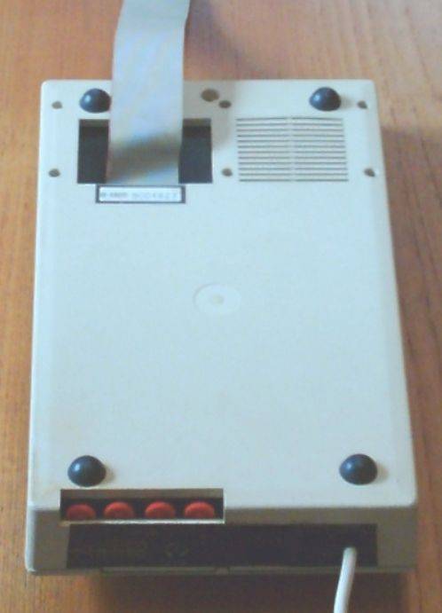 A length of 34-way ribbon cable emerges from the cut-out section for connection to the 1 MHz Bus of the BBC computer or to the 1 MHz Bus Out socket of a device already connected to the BBC to form a "daisy-chain" of peripherals.