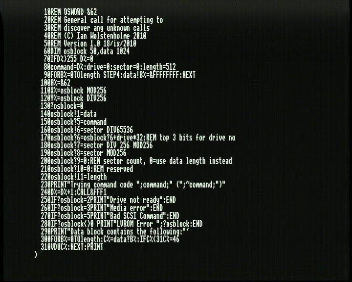 This is the routine I used to cycle through all the possible op codes and pass them to the LV-ROM player via OSWORD &62, the general SCSI call provided by VFS.