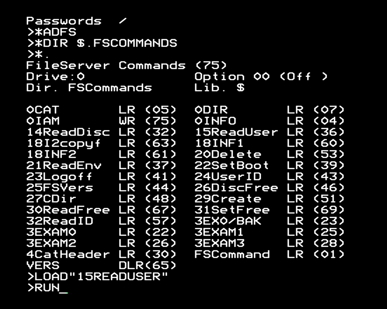 Next, FS op code 15, read user.