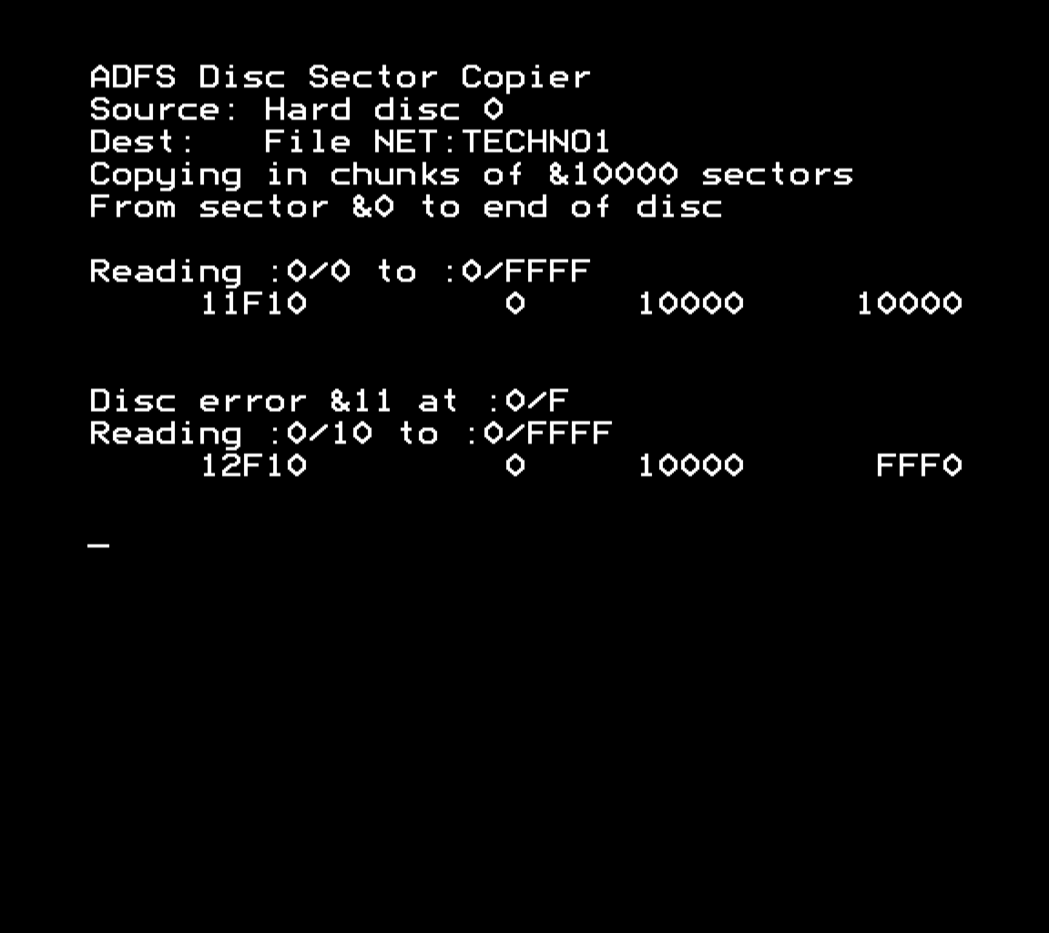 When it finds an error, I've got a debug readout being printed so I can make sure the pointers for the data buffer and the disc sector are correctly updated.