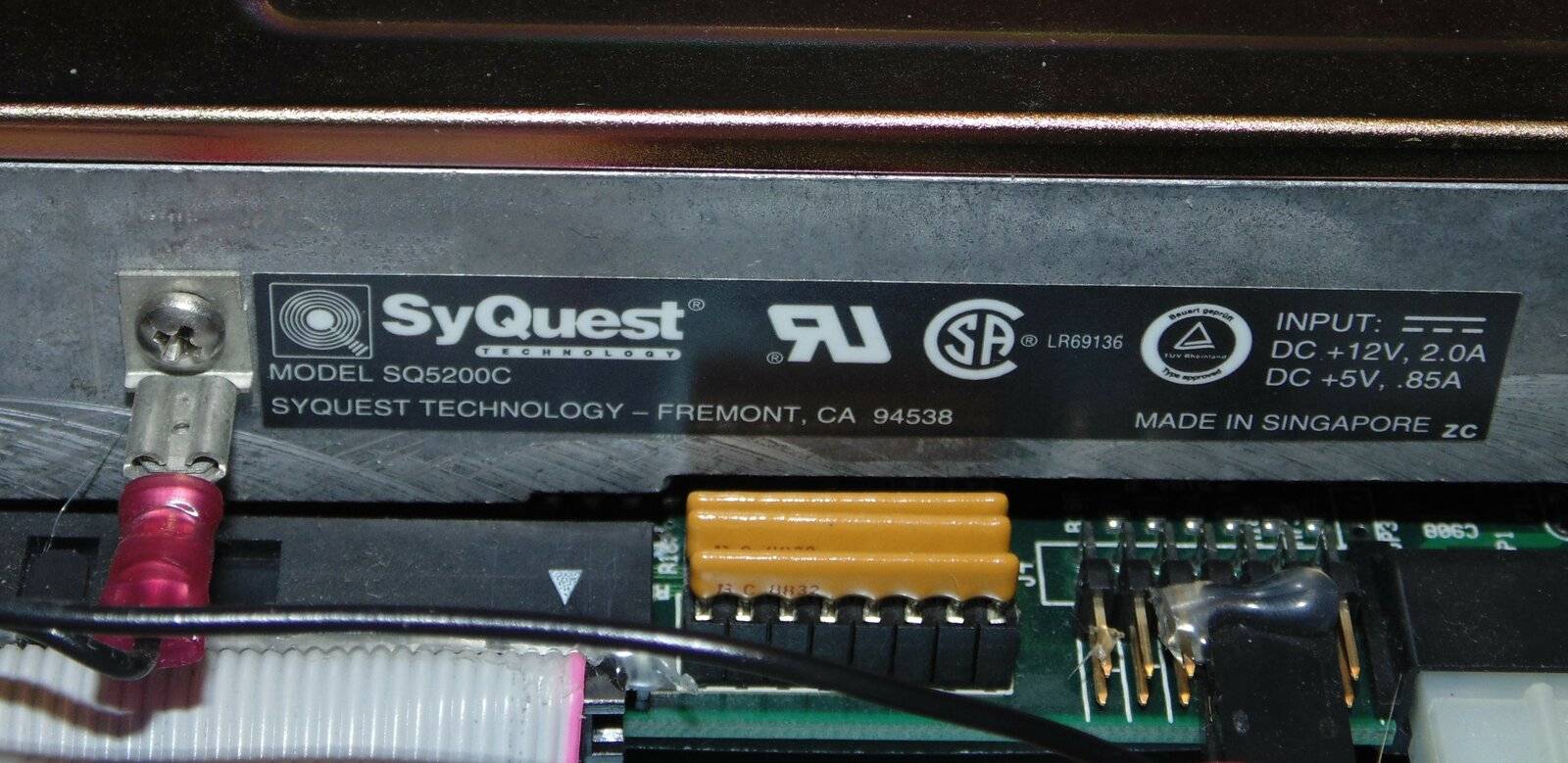 The drive is a Syquest SQ5220C 200MB cartridge drive. We can also see terminating resistors here.
