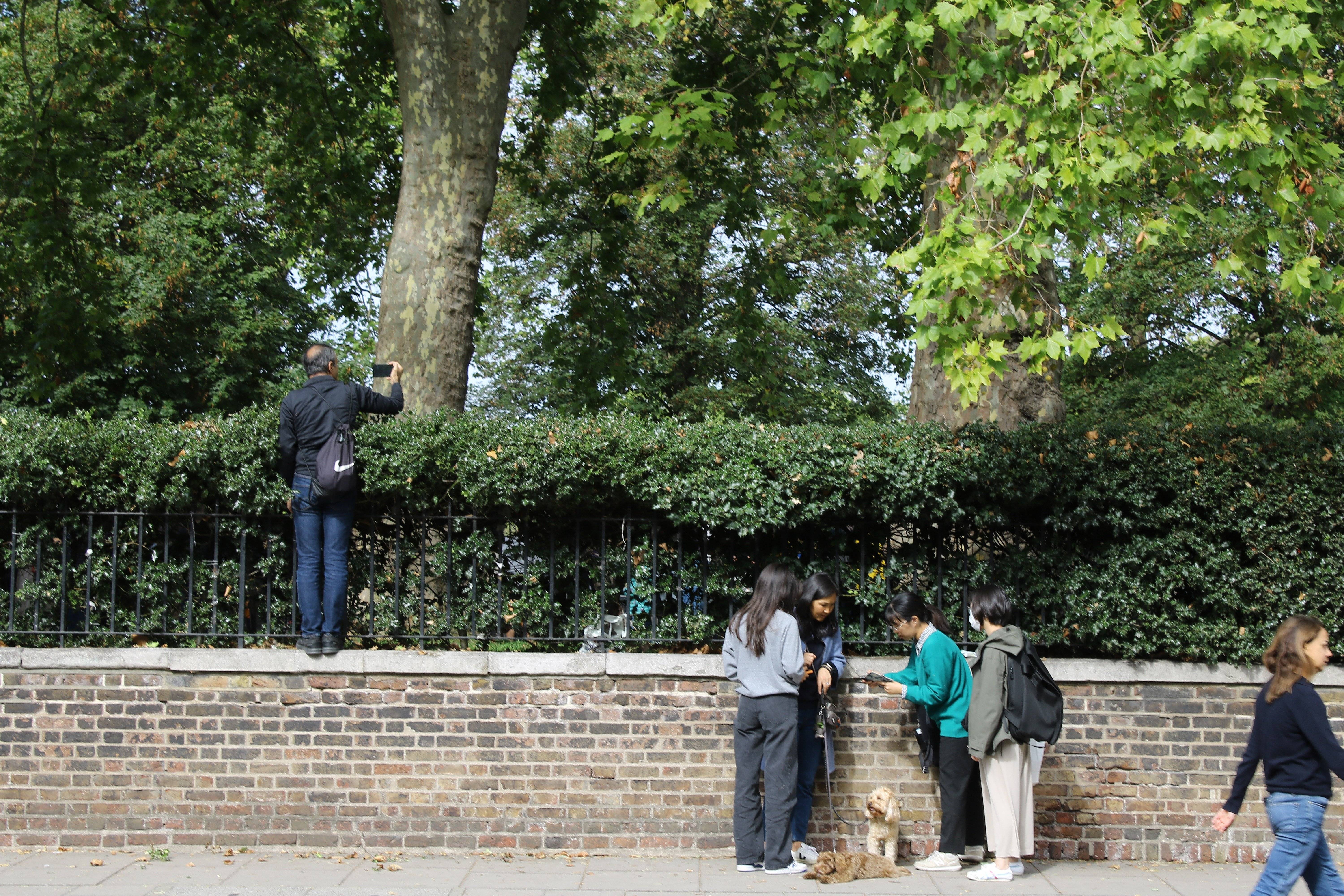 In fact, Hyde Park was too full by this point, and nobody was being allowed in. Instead I had to scale this wall and cling to the railings whilst being menaced and cut to pieces by the holly bushes. I said to the gentleman clinging next to me, still in place in this picture I took shortly afterwards, "This is the meaning of devotion."