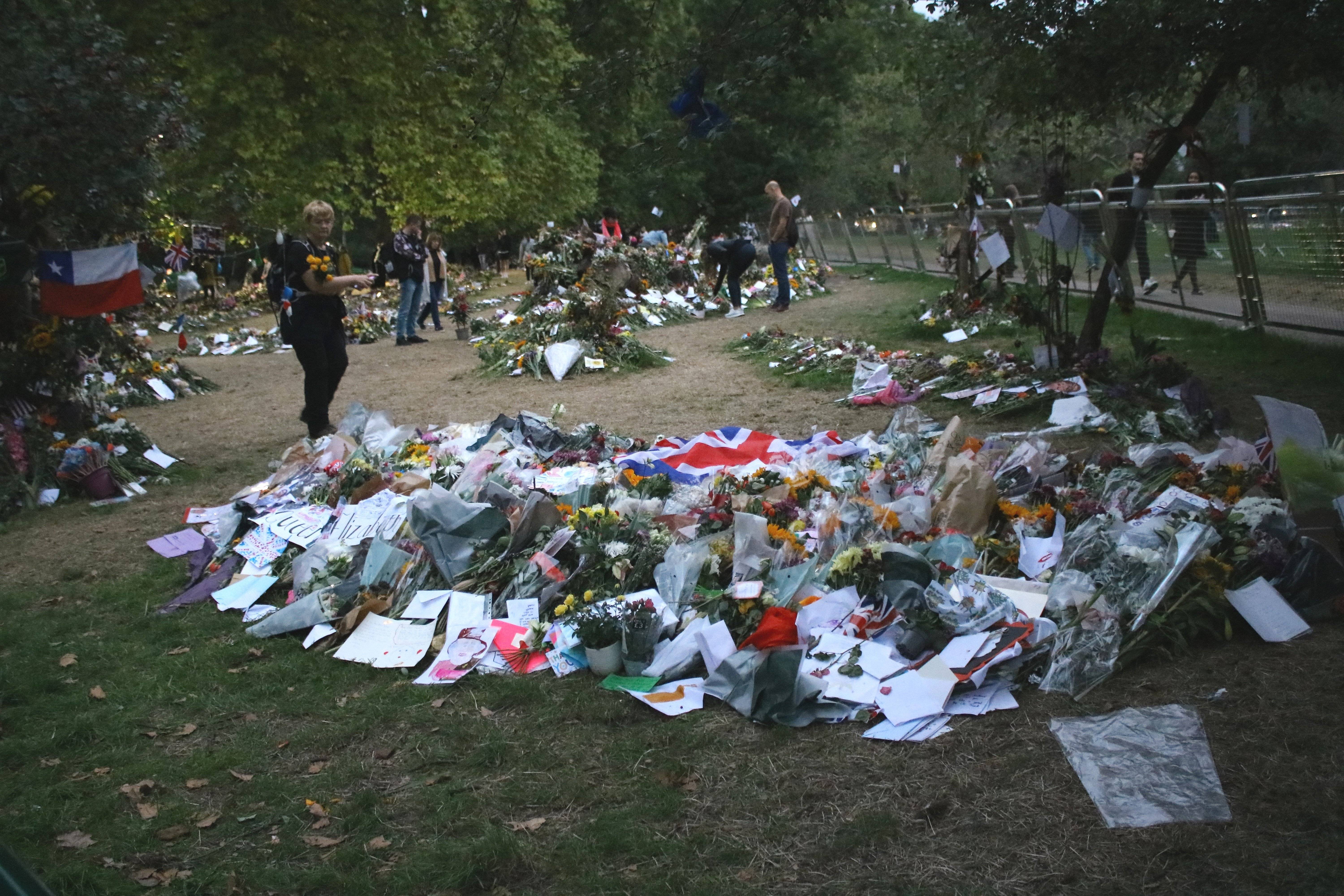 After returning to watch the Procession to Windsor and Committal Service in St George's Chapel on the television, I went for a twilight visit to the floral tribute section in Green Park.