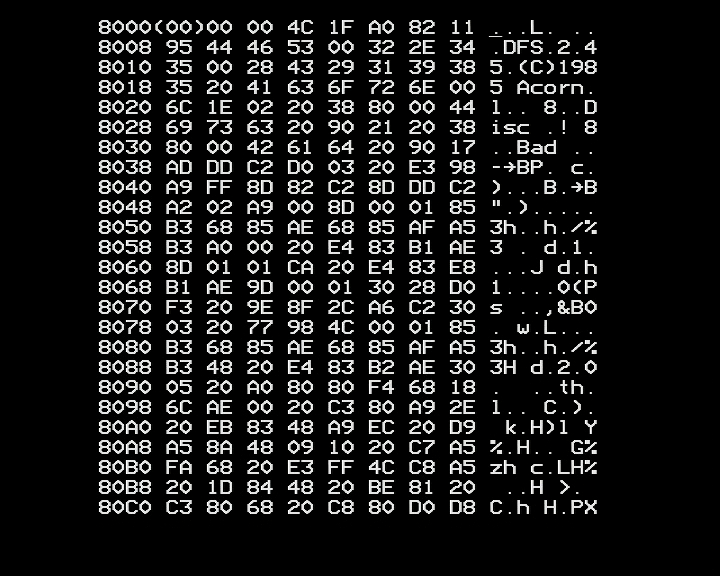 This is what it looks like - DFS 2.45 (C) 1985 Acorn.