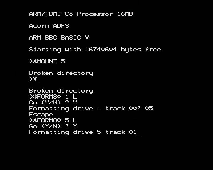Trying to select it using drive 1 one doesn't format it properly, so we have to use drive number 5.
