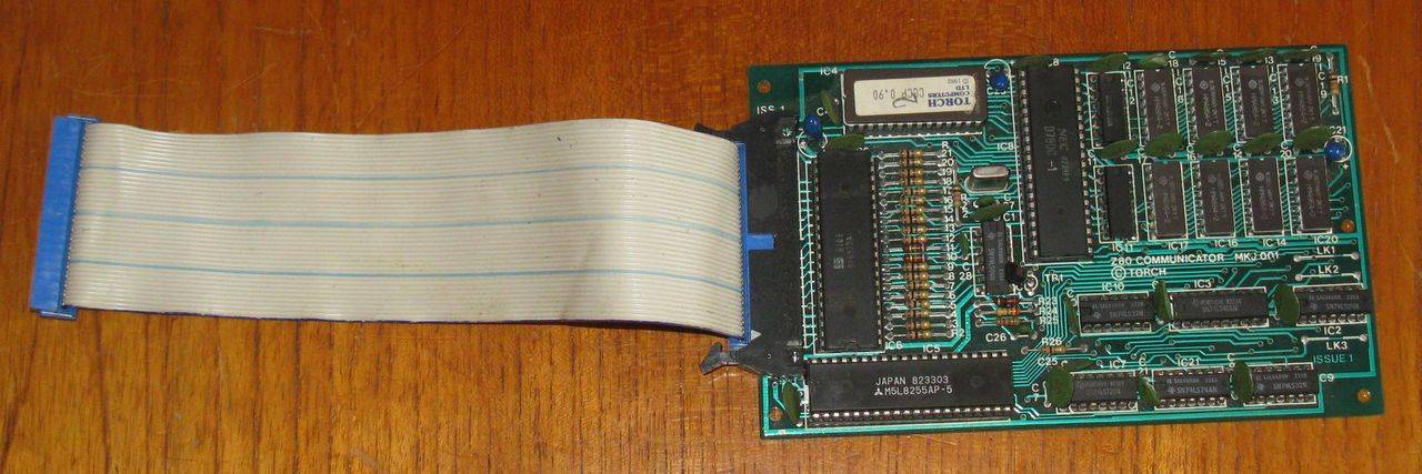 The Torch Z80 is a small board with a short ribbon cable attached for connection to the Tube port. The Z80 was not boxed as it was intended to sit inside the Beeb, possibly fixed to the inside of the lid with the ribbon passing under the keyboard to the Tube socket.