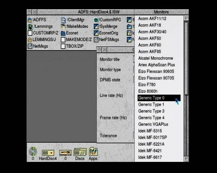 Select monitor type - 0 for normal TV; RISC PC connected to Sony TV.