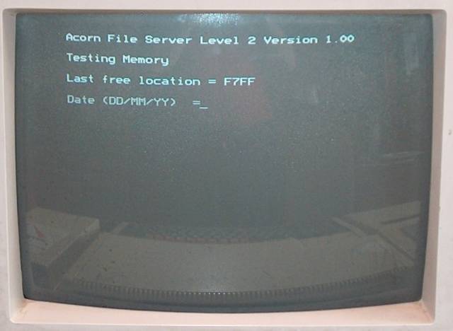 We are now ready to run the file server. Make sure the tube is running, put the software disc back in the drive and run the file server type using *FS. If your copy of the file server software disc has lost the file attributes, then the load and execution addresses are at &400 so you can type at the prompt *GO followed by *LOAD FS 400 and then *GO 400 to get started.