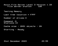 More modern storage devices, such as a Compact Flash Hard Drive, can also be used with L3 Econet, but the set up can be a bit tricky, so the fourth set here is a very detailed guide to using the L3 server with such a drive, followed by a look at my master floppy disc, updated in January 2014 and other picture sets using the Level 3 file server in different situations, including a detailed survey of several versions of the L3 server.