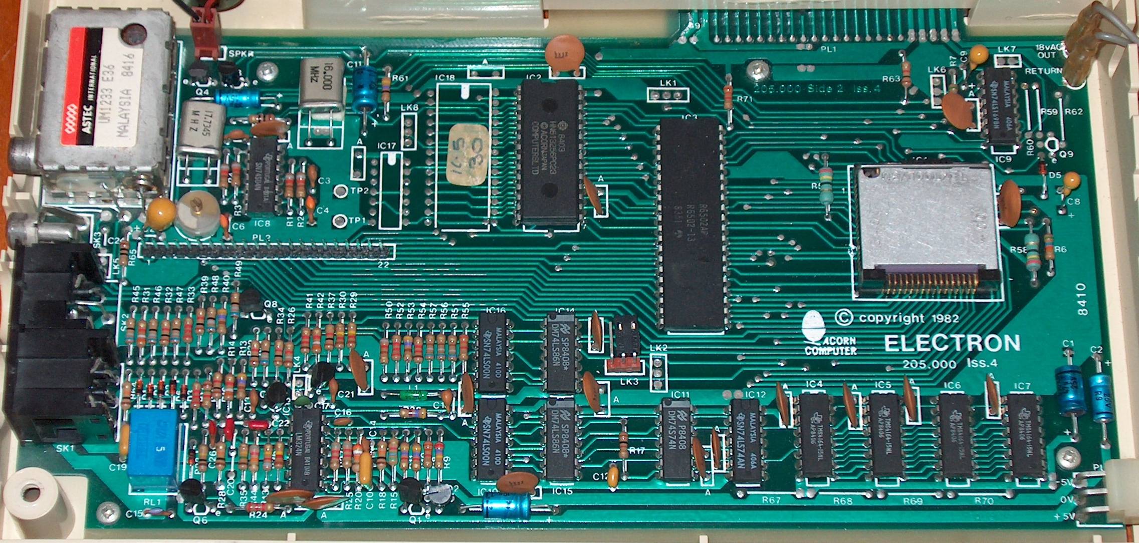 Here we can see the PCB in more detail. It's much smaller and simpler than the BBC micro motherboard.