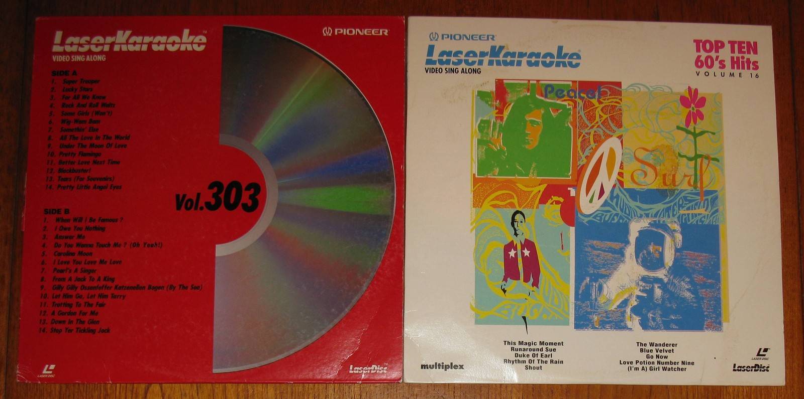 Here are two titles I have released under the Pioneer LaserKaraoke branding. Whether the volume number of the disc on the left is indicative of hundreds of titles having been available or not, I can't be certain, but there are plenty of these things about.