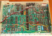 The final issue made some cosmetic changes to the issue 4 and tweaked some resistor values. The issue 7 appears to be the most common in circulation so it must have been in production for quite a while before the B+ came in. The printing colour and the colour of the decoupling capacitors seems to vary from machine to machine and is not linked to any particular issue. |