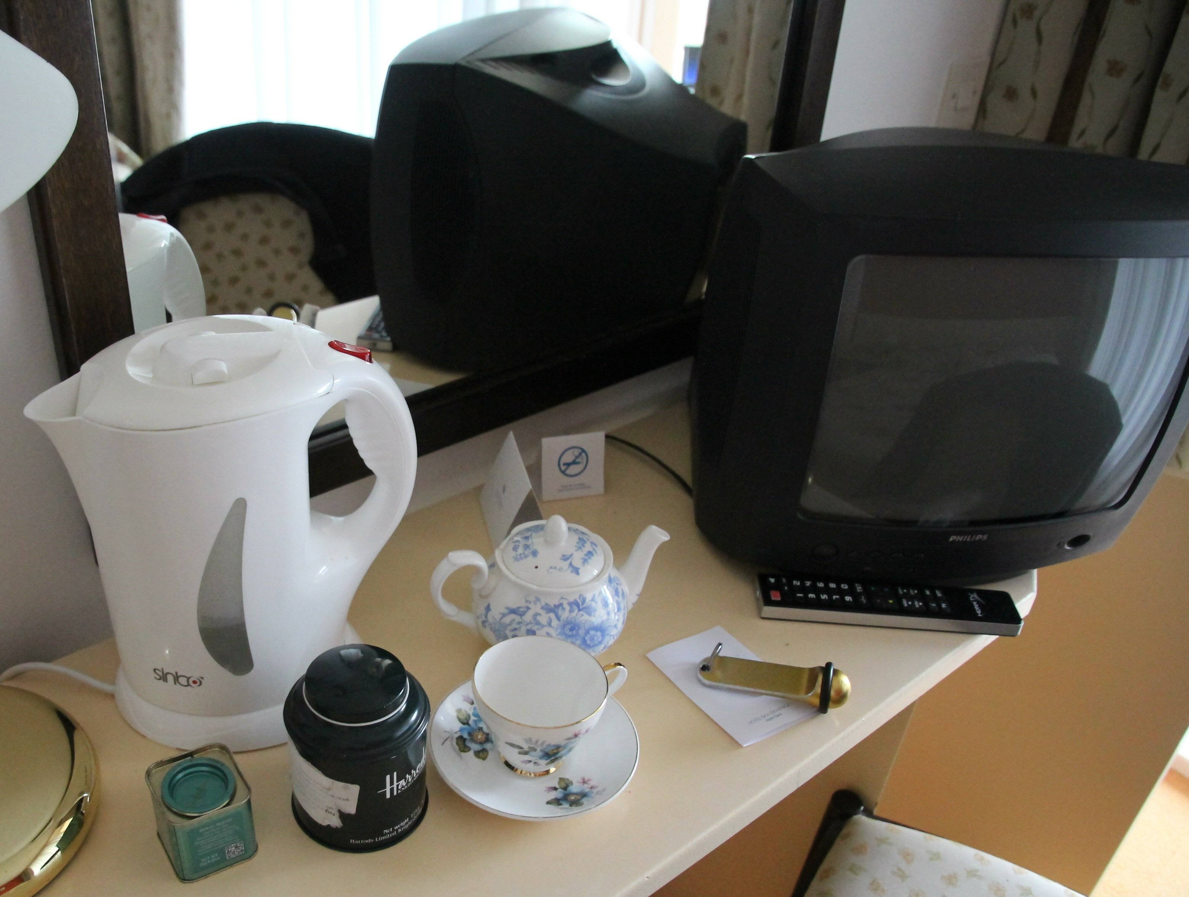 Legging it back to the hotel room to find out, here's the Television set next to everything else I brought with me.
