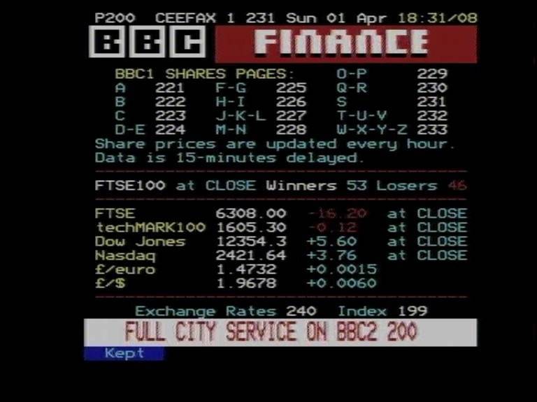 The Teletext receiver has a system of "kept" pages which can be recalled later. Pressing COPY will set a page as one of the Kept pages, assuming there is enough memory left. Teletext can keep up to 11 pages at once depending upon available memory.